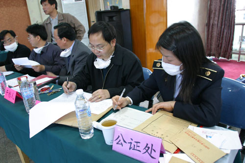 水電知識網»資訊»水利要聞»戴著口罩招投標別開生面----南水北調東線一期工程開標現場目擊