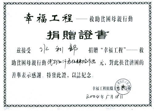 此次捐款總額為25346元,上交幸福工程組織工作委員會25346元(附憑證)。另外,幸福工程組織委會辦公室主任此次在中央國家機關計劃生育辦公室的募捐現場,親自為捐款單位頒發捐贈證書,以示感謝。