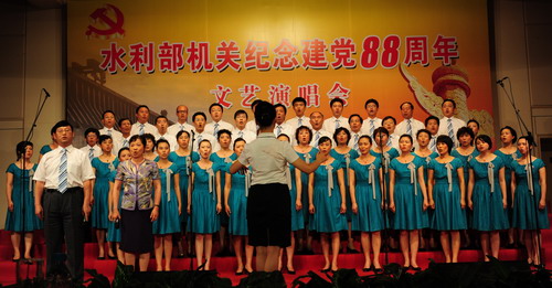 6月29日,水利部機關隆重舉行紀念建黨88周年文藝演唱會。我社組成的50人合唱隊以良好的精神面貌演唱的《英雄贊歌》獲得三等獎。