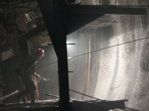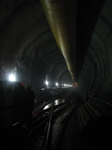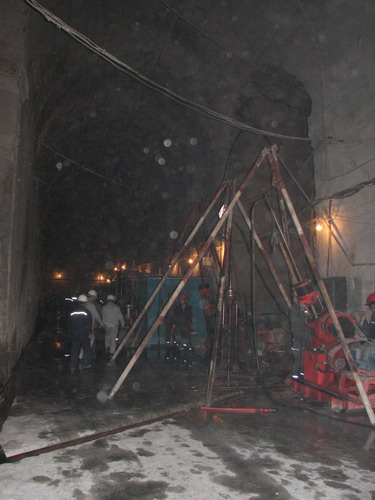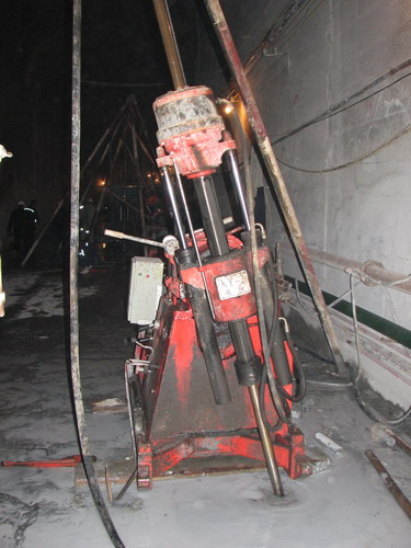 地下巖石太破碎時就要進行灌漿(水泥漿或化學漿)處理,這是灌漿機在灌漿廊道中作業