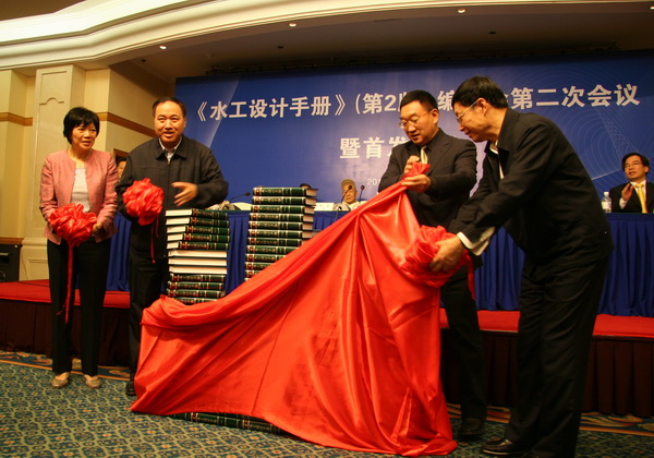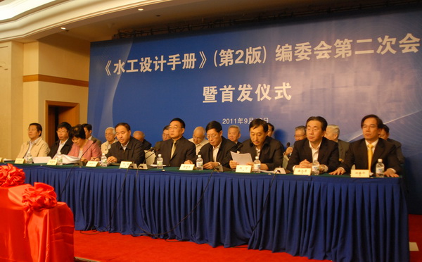 2011年9月18日,《水工設計手冊》(第2版)編委會在京舉行編委會第2次全體會議暨首發儀式。《水工設計手冊》(第2版)編委會主任、水利部部長陳雷出席首發式并作重要講話(全文另發)。會議由《水工設計手冊》(第2版)主編、水利部副部長劉寧主持。胡四一副部長宣讀了《水工設計手冊》(第2版)技術委員會主任、兩院院士潘家錚的書面講話(全文另發);新聞出版總署陳亞明副司長代表鄔書林副署長熱情致辭;索麗生主編作《水工設計手冊》(第2版)修編工作報告。陳雷、索麗生、胡四一、陳亞明一道為此書首發式揭彩。我社領導湯鑫華、胡昌支、陳東明、周金輝、李中鋒參加首發式。我社原總編輯王國儀獲贈樣書。