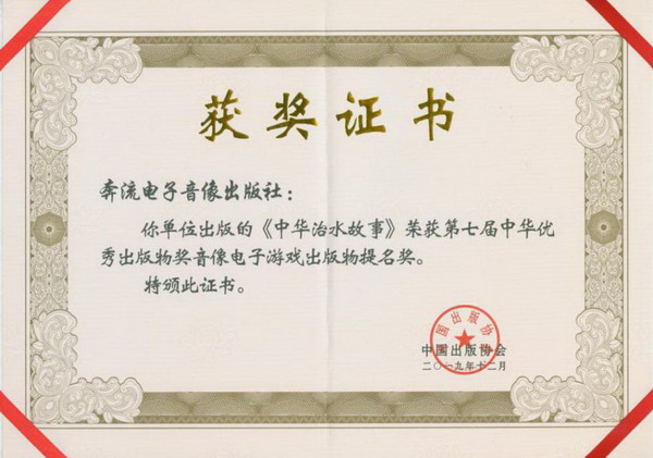 近日,中國出版工作者協(xié)會頒發(fā)了第七屆中華優(yōu)秀出版物獎的獲獎證書,我社出品的“中華治水故事”動畫片獲得音像電子游戲出版物提名獎。