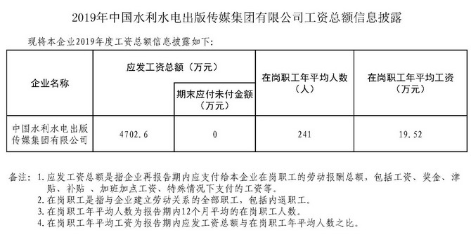水電知識網»資訊»出版傳媒資訊»2019年中國水利水電出版傳媒集團有限公司工資總額信息披露