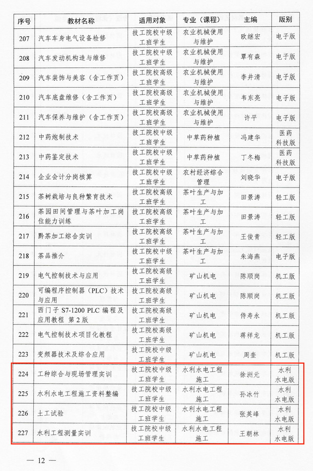 近日,《人力資源社會(huì)保障部辦公廳關(guān)于公布429種國(guó)家級(jí)技工教育和職業(yè)培訓(xùn)教材目錄的通知》(人社廳函〔2022〕52號(hào))發(fā)布,我社出版的《水利水電工程施工資料整編》《水利工程測(cè)量實(shí)訓(xùn)》《土工試驗(yàn)》《工種綜合與現(xiàn)場(chǎng)管理實(shí)訓(xùn)》共4種教材成功入選人力資源社會(huì)保障部國(guó)家級(jí)技工教育和職業(yè)培訓(xùn)教材。