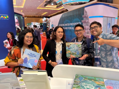 5月22日上午,水利部、世界水理事會、印尼公共工程和公共住房部、烏茲別克斯坦水利部負責人和中國駐印尼登巴薩總領事共同巡視中國館并出席在中國館舉行的論壇主題繪本等五種新書發布儀式。其中兩種是以“水促進共享繁榮”為主題的圖書,另外三種是以國內外青少年為讀者對象的水利科普圖書。《一滴水》《水與人類——水精靈的全球水之旅》這兩個繪本是中國水利部與世界水理事會合作出版的最新成果,分別以中、英、法、印尼四種語言版本出版;《你好,大壩》、《節水總動員之江小惜的時光旅行》以中、英版本出版;《小蚯蚓尋龍記》以中文版本出版。這些作品分別由中國水利部與世界水理事會、南京水利科學研究院、江西省水利科學院、中國水利博物館會同中國水利水電出版社聯合推出,旨在全球范圍內普及水知識與節水理念,激發青少年對水世界的探索興趣。