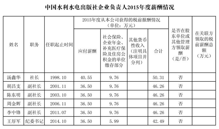 水電知識網»資訊»出版傳媒資訊»中國水利水電出版社負責人2015年度薪酬情況