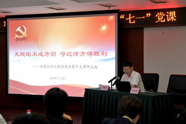 為深入學習貫徹習近平新時代中國特色社會主義思想和黨的十九大精神,紀念中國共產(chǎn)黨建黨97周年,7月3日,我社舉行“不忘初心,牢記使命‘七一’主題黨課”活動,社黨委書記涂曙明講黨課,社長營幼峰主持,社領導李中鋒、王厚軍、陳玉秋參加活動。在黨課上,還舉行了黨員徽章配發(fā)儀式和全體黨員重溫入黨誓詞集體宣誓。
