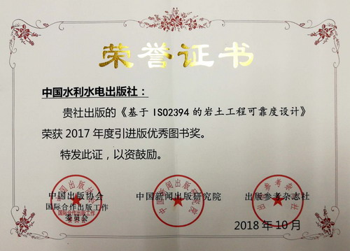 近日,2017年度(第十七屆)輸出版引進(jìn)版優(yōu)秀圖書(shū)推介活動(dòng)評(píng)選結(jié)果公布,我社《基于ISO 2394的巖土工程可靠度設(shè)計(jì)》(責(zé)任編輯:朱雙林、王菲)獲2017年度引進(jìn)版優(yōu)秀圖書(shū)獎(jiǎng)。