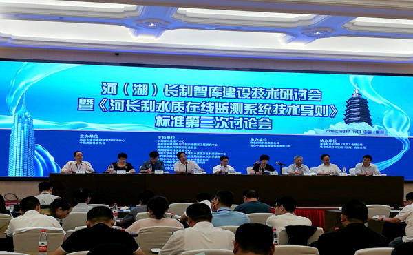 河(湖)長制智庫建設(shè)技術(shù)研討會(huì)現(xiàn)場(chǎng) 2018年9月17—19日,我社社長營幼峰應(yīng)邀參加河(湖)長智庫建設(shè)技術(shù)研討會(huì)暨《河長制水質(zhì)在線監(jiān)測(cè)系統(tǒng)基數(shù)導(dǎo)則》標(biāo)準(zhǔn)第三次討論會(huì)。會(huì)議由河海